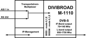 The Divibroad M-1110 is a cost effective modulator with ASI input of the DVB transport streams can feed into SAT systems. With a standby of less than 10sec. after switch and a power consumption of only 15 watts, it is one of the fastest and most efficient modulators its class.
